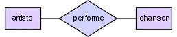 Les objets sont représentés par des rectangles, les associations par des ellipses ou des losanges. Les entités ou associations, ont des propriétés ou attributs.