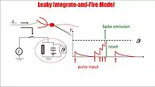 et converge pour des courants d'entrée grand vers le modèle sans fuite avec période réfractaire vue précédemment[2]. Ce modèle peut également être utilisé pour les neurones inhibiteurs[13],[14].