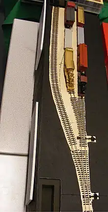 Viennent ensuite, vers 1890-1900[L 9], ce qu'on appelle les trains jouets, roulant sur rails. Ces rails en coupons, d'abord à ornières[18] puis avec de véritables éléments de voie (parfois appelés improprement « rails ») sont assemblables à l'envi. Ces éléments de voie permettent les premiers ovales de voie, agrémentés pour certains d'appareils de voie (aiguillages, croisements, etc.).