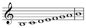 Cette gamme moderne a le même enchaînement de tons et de demi-tons que le mode majeur, excepté le septième degré qui est un demi-ton plus bas[1]. Le mode mixolydien est parfois appelé le mode dominant[12] car il s'agit du mode construit sur le cinquième degré (dominante) de la gamme majeure. On utilise aussi le terme hypoionien[13]. La septième mineure de la gamme est à un triton de la médiante (degré de la tierce majeure) de la tonalité.