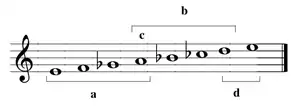 sol la si do ré)[1] - mode mixolydien de mi (relatif au ton de la majeur – mi fa