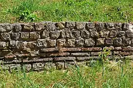 Exemple de mur polylithique, associant le granite de l'Aber-Ildut, l'orthogneiss et la kersantite de Brest[16].