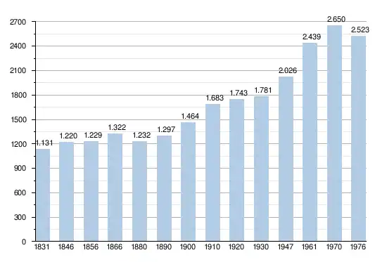 - Sources : INS, Rem. : 1831 jusqu'en 1970 = recensements, 1976 = nombre d'habitants au 31 décembre[2].