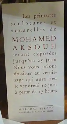 - Aksouh : (cat. exp.) (préf. Kaki), Alger, Galerie 54,