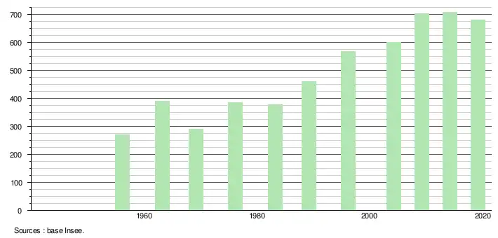 - Population municipale légale en vigueur au , millésimée 2019, définie dans les limites territoriales en vigueur au , date de référence statistique : .