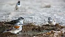 On a observé des cas d'hybridation avec le Moineau domestique[7], le Moineau sud-africain et le Moineau doré[19].