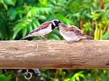 Dans les villes, le Moineau mélanure entre en concurrence avec le Moineau sud-africain, une espèce indigène, et le Moineau domestique, une espèce introduite[20]. Comme il préfère vivre auprès des humains, il se trouve avec succès en concurrence avec ces deux espèces, qui peuvent cependant endiguer sa reproduction en certains endroits[8],[17].