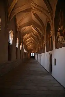 Vicente Carducho, né à Florence en 1568 sous le nom de Vincenzo Carducci était au début du XVIIe siècle l'un des peintres les plus prestigieux de la cour madrilène - contemporain de Vélasquez, il était comme lui peintre du roi. C'est à lui que le prieur Juan de Baeza confia en 1626 la tâche de réaliser, pour les 54 arcades du cloître, autant de tableaux, de grandes dimensions, sur la vie de saint Bruno, le fondateur de l'ordre des Chartreux, et sur l'histoire de l'ordre. Il s'agit de l'œuvre picturale la plus complète et la plus ambitieuse traitant de ce sujet, exemple remarquable de maîtrise de l'espace, d'expression des sentiments et des gestes et d'harmonie des coloris. Carducho mit six ans à achever la décoration du cloître, qui rappelle un peu une peinture murale.