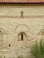 Les façades nord et sud sont rythmées par des niches peu profondes qui se terminent par des arcs en plein cintre[2].