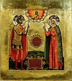 Le tsar Fédor III et la tsarine Agaphia Grouchetskaïa, ajoutèrent aux registres de l'iconostase du monastère de la Dormition d'Alexandrov, une icône de saint Théodore le Stratilate et de la sainte martyre Agaphia[3].