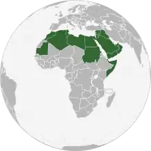 L'expression de monde arabe (arabe : العالم العربي, al-ʿālam al-ʿarabī ou الوطن العربي al-wațan al-ʿarabī) désigne un ensemble de pays couvrant la péninsule arabique, l'Afrique du Nord et le Proche-Orient, ayant en commun la langue arabe. Bien qu'assez largement utilisé, ce terme ne renvoie pas à une liste définie de pays, et à la différence de la Ligue arabe par exemple, le monde arabe ne constitue pas une entité politique formelle. On peut néanmoins considérer plusieurs critères[1] pour rattacher un État au monde arabe : l'importance de la langue arabe (critère linguistique), sa localisation (critère géographique) ou enfin l'appartenance à la Ligue arabe (critère politique).