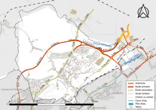 L'occupation des sols de la commune, telle qu'elle ressort de la base de données européenne d’occupation biophysique des sols Corine Land Cover (CLC), est marquée par l'importance des territoires artificialisés (45,3 % en 2018), en augmentation par rapport à 1990 (30,7 %). La répartition détaillée en 2018 est la suivante : prairies (32,5 %), zones urbanisées (28,7 %), forêts (19,1 %), zones industrielles ou commerciales et réseaux de communication (16,6 %), zones agricoles hétérogènes (3 %)[21]. L'évolution de l’occupation des sols de la commune et de ses infrastructures peut être observée sur les différentes représentations cartographiques du territoire : la carte de Cassini (XVIIIe siècle), la carte d'état-major (1820-1866) et les cartes ou photos aériennes de l'IGN pour la période actuelle (1950 à aujourd'hui)[Carte 1].