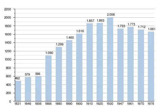 - Sources : INS, Rem. : 1831 jusqu'en 1970 = recensements, 1976 = nombre d'habitants au 31 décembre.