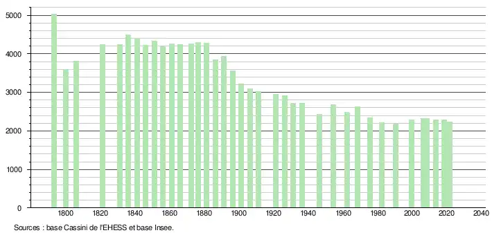 - Population municipale légale en vigueur au 1er janvier 2024, millésimée 2021, définie dans les limites territoriales en vigueur au 1er janvier 2023, date de référence statistique : 1er janvier 2021.