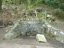 On donne à la source du mont Saint-Rigaud des vertus : celle-ci traiterait les maux de gorge, les douleurs rhumatismales et plus encore la stérilité des femmes. À l'origine, une légende raconte que l'un des derniers moines présents possédait des dons de guérison et que sa sépulture fut placée à l'emplacement actuel de la fontaine, donnant à l'eau qui en coulait des vertus médicinales. La source a été abandonnée jusqu'en 1988[réf. nécessaire] aux plantes aquatiques avant d'être débroussaillée et remise en valeur par le Club des Anciens de Monsols. Les croix de bois à côté de la source ont été plantées par des pèlerins pour marquer leur passage.