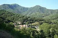 Vue du hameau de Plaisance et de la montagne de Marcou.