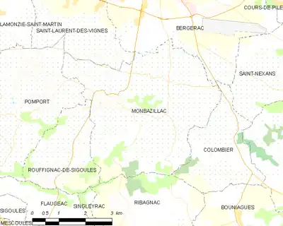 Monbazillac est limitrophe de six autres communes. Au sud-ouest, son territoire est distant d'environ 300 mètres de celui de Singleyrac.
