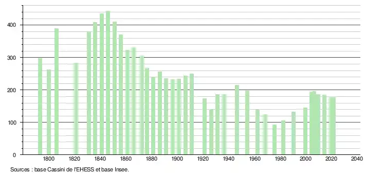 - Fiches Insee - Populations légales de la commune pour les années 2006, 2007, 2008, 2009, 2010, 2011, 2012, 2013, 2014, 2015, 2016, 2017, 2018, 2019, 2020 et 2021.