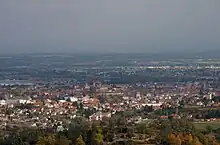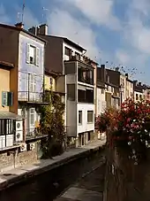 ![]() ![]() ![]() ![]() ![]() ![]() ![]() ![]() De haut en bas et de gauche à droite : un panorama de la ville ; des toits dont celui du palais de justice ; l'hôtel de ville de Moingt ; la façade de la chapelle des pénitents du Confalon, désormais théâtre des Pénitents ; une fresque sur un immeuble d'habitations du quartier Beauregard ; la tour de Moingt ; le quai de l'Astrée avec au premier plan le Vizézy et au second plan la collégiale ; la porte de la caserne de Vaux. |