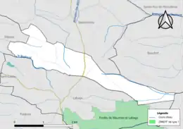 L’inventaire des zones naturelles d'intérêt écologique, faunistique et floristique (ZNIEFF) a pour objectif de réaliser une couverture des zones les plus intéressantes sur le plan écologique, essentiellement dans la perspective d’améliorer la connaissance du patrimoine naturel national et de fournir aux différents décideurs un outil d’aide à la prise en compte de l’environnement dans l’aménagement du territoire. Une ZNIEFF de type 1[Note 2] est recensée sur la commune[18] : les « forêts de Rieumes et Lahage » (728 ha), couvrant 7 communes du département[19].