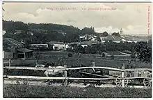 L'occupation des sols de la commune, telle qu'elle ressort de la base de données européenne d’occupation biophysique des sols Corine Land Cover (CLC), est marquée par l'importance des territoires agricoles (70 % en 2018), néanmoins en diminution par rapport à 1990 (73,6 %). La répartition détaillée en 2018 est la suivante : terres arables (49,6 %), forêts (26,4 %), prairies (20,4 %), zones urbanisées (3,6 %)[16]. L'évolution de l’occupation des sols de la commune et de ses infrastructures peut être observée sur les différentes représentations cartographiques du territoire : la carte de Cassini (XVIIIe siècle), la carte d'état-major (1820-1866) et les cartes ou photos aériennes de l'IGN pour la période actuelle (1950 à aujourd'hui)[Carte 3].