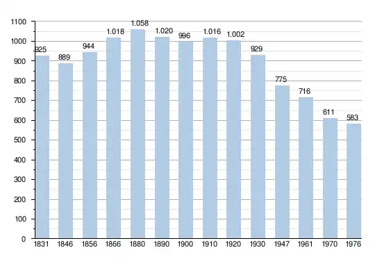 - Sources : INS, Rem. : 1831 jusqu'en 1970 = recensements, 1976 = nombre d'habitants au 31 décembre.