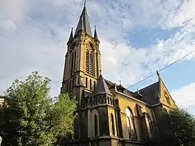 ![]() ![]() ![]() ![]() ![]() ![]() De haut en bas, de gauche à droite : château de Courcelles ; l'église Saint-Joseph ; la chapelle du Petit Séminaire ; la chapelle Saint-Privat ; le couvent du Sacré-Cœur ; le temple protestant. |