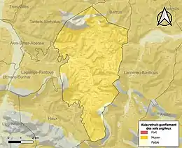 Le retrait-gonflement des sols argileux est susceptible d'engendrer des dommages importants aux bâtiments en cas d’alternance de périodes de sécheresse et de pluie[43]. 91,4 % de la superficie communale est en aléa moyen ou fort (59 % au niveau départemental et 48,5 % au niveau national)[Carte 6]. Depuis le , en application de la loi ELAN, différentes contraintes s'imposent aux vendeurs, maîtres d'ouvrages ou constructeurs de biens situés dans une zone classée en aléa moyen ou fort[Note 8],[44].