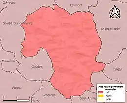 Le retrait-gonflement des sols argileux est susceptible d'engendrer des dommages importants aux bâtiments en cas d’alternance de périodes de sécheresse et de pluie. La totalité de la commune est en aléa moyen ou fort (94,5 % au niveau départemental et 48,5 % au niveau national). Sur les 127 bâtiments dénombrés sur la commune en 2019, 127 sont en aléa moyen ou fort, soit 100 %, à comparer aux 93 % au niveau départemental et 54 % au niveau national. Une cartographie de l'exposition du territoire national au retrait gonflement des sols argileux est disponible sur le site du BRGM[21],[Carte 3].