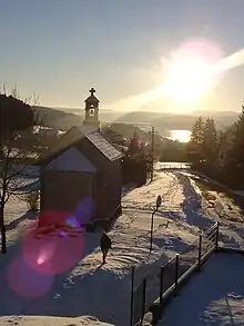 - La chapelle Notre-Dame de Lourdes, également appelée « chapelle de la vue du lac »[23], située sur les hauteurs du bourg, au lieu-dit « le Pierreux », construite en 1889 à la suite du vœu fait à la Vierge Marie si elle protégeait les habitants de la commune de la guerre de 1870.