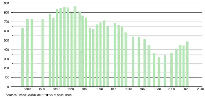 487 hab. (2021 en augmentation de 8,95 % par rapport à 2015)