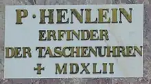 Le Valhalla de Donaustauf, monument aux «politiciens, souverains, scientifiques et artistes de langue allemande»[53], honore Peter Henlein avec les mots inventeur de la montre[54].