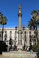 Sur la fontaine a été érigée une colonne de fer de 18 mètres de hauteur, supposée comme étant le premier usage de ce matériau à des fins ornementales dans la ville[3]. Pour parachever la colonne il a été souhaité une statue consacrée à un personnage éminent de l'histoire maritime de la ville, comme Christophe Colomb ou Blasco de Garay. C'est finalement Galceran Marquet (1366-1410) qui a été choisi, qui avait été selon l'historien Antoni de Bofarull le vice-amiral de la flotte catalane qui avait lutté contre la République de Gênes en 1331. La fontaine a été inaugurée le 29 juin 1851[4].