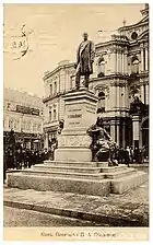 Le monument en mémoire de Piotr Stolypine en face du Café Semadeni, à gauche