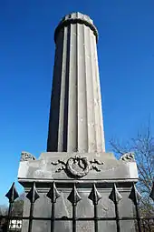 Le piédestal porte une colonne brisée ornée de cannelures et ceinte d'une couronne de laurier près de son sommet. La colonne brisée évoque la courte carrière de l'officier mort à 29 ans[1].