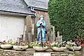 9 noms de soldats sont gravés sur une plaque fixée sur la face antérieure du piédestal : tous sont morts pendant la guerre 14-18.