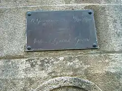 - l’autre plaque, en écriture cursive, non visible sur le cliché Fourgeaud, est légendée : « Le Gouvernement de la République / aux / Morts de la Grande Guerre ».