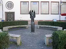 En 1994, l’Ange de Francfort de la sculptrice Rosemarie Trockel est érigé sur la place Klaus Mann à Francfort-sur-le-Main (Allemagne).