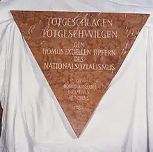 Dans l'ancien camp de concentration de Dachau, une plaque commémorative a été inaugurée en 1994, avec cette inscription : « Totgeschlagen Totgeschwiegen Den homosexuellen Opfern des Nationalsozialismus Die homosexuellen Initiativen Münchens 1985 ».