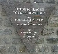 Une plaque dédiée à la mémoire des homosexuels victimes du national-socialisme a été installée le , dans l'ancien camp de concentration de Mauthausen (Autriche) à l'initiative de l'organisation LGBT allemande HOSI Wien[1]. C'est le premier monument du genre dans le monde.