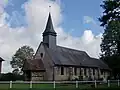 Site inscrit (1933)[35] ; le tableau du retable, représentant la Résurrection du Christ, fut offert par Rose Daniel de Grangues, veuve de Charles de Larcher de Dreux (mariés le à Morainville-Jouveaux) ; vestiges de litre funéraire[36] sous le porche ; harmonium Dumont-Lelièvre[37] ; - une croix du XIXe siècle dans le cimetière