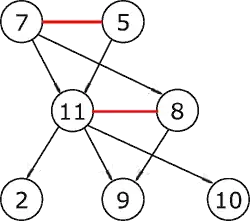 Le graphe moral correspondant. Les nouvelles arêtes sont en rouge.