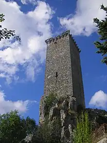 - F. Buffières, reprenant le vicomte de Lescure et l'abbé Prouzet situait le château au puech David, près d’Estables, les fouilles de 1994 et 2001 ont confirmé la localisation au truc de Randon