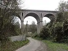 - Construit pour la ligne SNCF Paris - La Ferté-Gaucher-Coulommiers-Sézanne, ce pont est constitué de trois arcades passant au-dessus de la route de Mortcerf. Il est construit sur place avec la terre de Mortcerf, par 1 000 ouvriers.