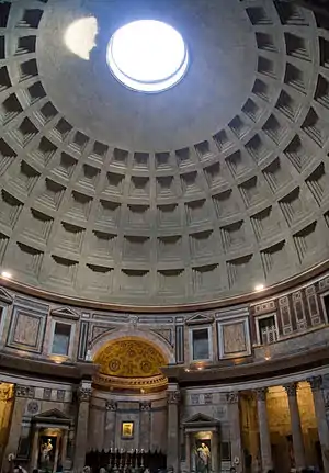 Vers le Ier siècle apr. J.-C., la Rome antique améliore la technique de la chaux par l’incorporation de sable volcanique de Pouzzoles - la pouzzolane - ou de tuileaux broyés et tamisés. Comme le dit Vitruve dans son De architectura (Livre II, Chapitre 6), le mortier peut résister à l'eau et même faire prise en milieu très humide. Cette vertu est due à la présence d'une grande quantité de silicate d'alumine. En ajoutant à la chaux aérienne de la pouzzolane ou des tuileaux, on la transforme artificiellement en chaux hydraulique. Ce n'est qu'en 1818 que Louis Vicat expliquera les principes de cette réaction, dans sa théorie de l'hydraulicité[33], ouvrant la voie à la découverte du ciment Portland.
