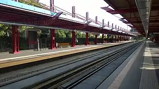 La station est accessible depuis ses deux côtés. Une passerelle située au milieu des quais, équipée d'ascenseurs et d'escaliers mécaniques, permet l'interconnexion entre les deux quais.