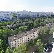L'énorme espace compris entre l'ancienne muraille de terre et la rocade MKAD a été progressivement occupé dans le cadre d'une gigantesque plan d'expansion de Moscou lancé par Staline dans les années 1930 mais dont la réalisation n'a véritablement démarré qu'au début des années 1960. D'anciens villages ont été remplacés par des quartiers d'immeubles collectifs initialement relativement bas (quatre à cinq étages) pour ne pas avoir à installer d’ascenseurs. Aujourd'hui ces cités sont constituées de barres de 12 à 18 étages et longues de plusieurs centaines de mètres comportant des établissements scolaires mais souvent mal desservis dans le domaine des transports et des commerces. Cette partie de Moscou accueille la plus grande partie de la population moscovite. De nombreuses zones naturelles, constituées de parcs, lacs et forêts ont été préservés entre les différents ensembles et constituent une des caractéristiques les plus frappantes de Moscou. Le développement de la circulation automobile dans les années 1990 a conduit à la construction de grands centres commerciaux au niveau des échangeurs situés aux intersections entre le MKAD et les grands axes routiers rayonnant depuis le centre de la capitale. L'urbanisation s'est étendue au-delà de cette rocade dès les années 1970[10].