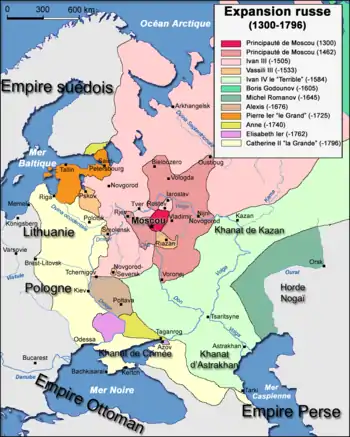 - Paul Marchand, Atlas géopolitique de la Russie : le grand retour sur la scène internationale, Paris, Éditions Autrement, , 480 p. (ISBN 978-2-7467-4238-3), « La construction du territoire », p. 1-3/5