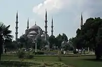 Les premières mosquées dans l’Empire ottoman, comme la Hagia Sophia d'Istanbul, étaient à l’origine des églises ou des cathédrales de l’Empire byzantin. Les Ottomans ont par la suite introduit une nouvelle architecture des mosquées. De grands dômes centraux sont ajoutés, avec des minarets multiples et des façades ouvertes. Les architectes ottomans ont raffiné la conception des colonnes, les plafonds sont devenus plus hauts, tout en incorporant les éléments traditionnels, tels que le mihrab[27]. On trouve jusqu’à nos jours en Turquie des mosquées qui témoignent du modèle ottoman.