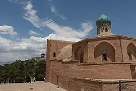 La mosquée est accessible par quatre grandes portes : au nord, au sud, à l'est, au nord-ouest. Les portes s'ouvrent sur des couloirs d'accès comprenant de nombreuses arcades en brique. Au-dessus de portes au nord et à l'est sont disposés des muqarnas en partie en plâtre et en partie carrelées. Le dôme est décoré de carrelages.